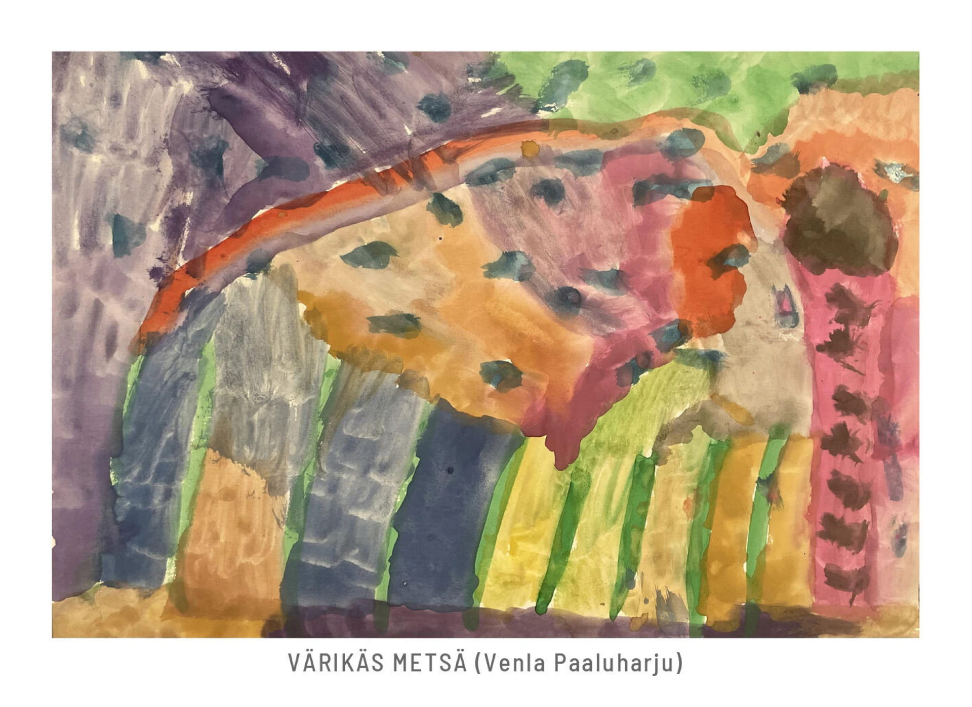 Lapset sen kertovat -näyttely esittelee 30 teosta, jotka ovat syntyneet Tukenan ryhmälomituksissa Liedossa, Ikaalisissa ja Rovaniemellä kesän ja syksyn 2024 aikana. Ryhmälomitukset tarjoavat tukea tarvitseville lapsille viikonloppuisin leiritoiminnan periaattein järjestettävää lyhytaikaista huolenpitoa.