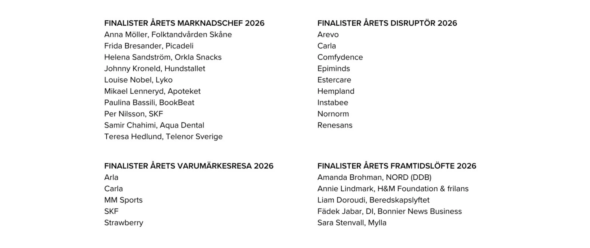 Årets Marknadschef 2026 lyfter den kommersiella kraften i samspelet mellan teknik, kreativitet och modiga team. Det handlar om att lämna silos, skala det mänskliga, stärka kärnan och bevisa hur idéer driver affärsresultat när marknadsfunktionen tar sin rättmätiga plats vid tillväxtbordet.